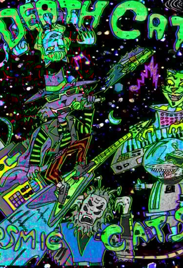 The band DEATH CAT finds themselves in space after being abducted by space possums who need their help against the tyrannical Zispt Empire.